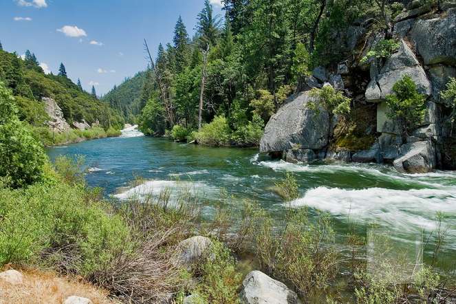 Peak character (late May through mid-July, and into August in heavy-snow years). During the record 2017 Sierra snowpack, Andrew Skurka described the South Fork Kings as impassable at the standard crossing; his party avoided it entirely by staying high on the east side of the river. The river's large drainage basin means it responds violently to diurnal snowmelt cycles: afternoon flow can be double the early-morning volume. In peak runoff the crossing becomes waist- to chest-deep with powerful, opaque current and floating debris. Multiple trip reports from 2017 and 2023 (another heavy-snow year) describe the main ford as impassable during afternoon hours.